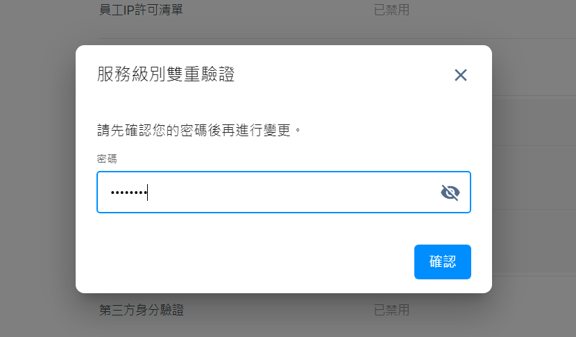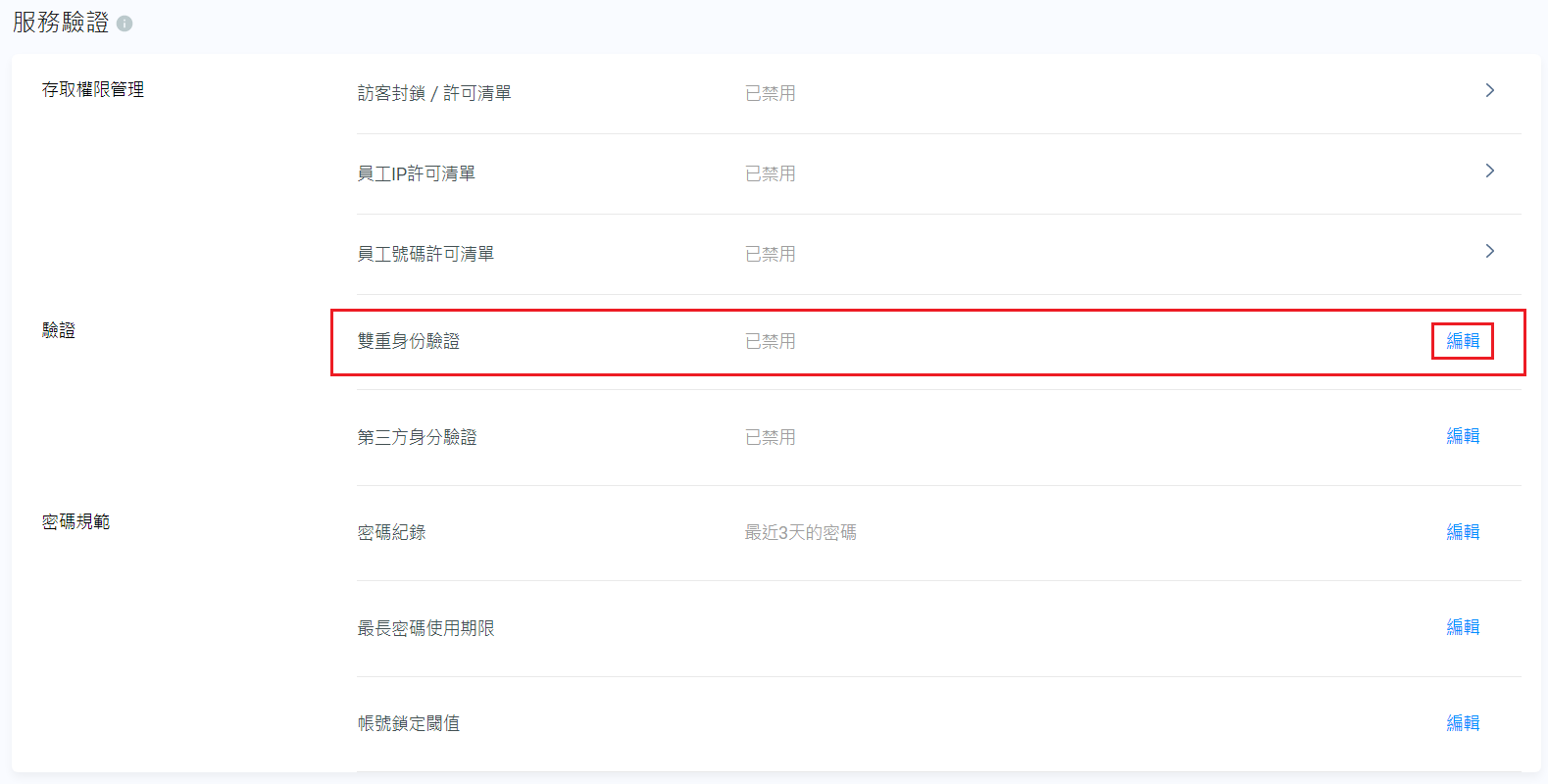 具有管理訪問權限的員工,可以啟用或停用服務級別雙重身份驗證。