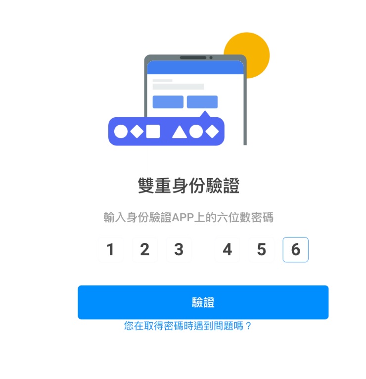 下次登入時,您需要輸入身份驗證應用程式發出的六位數驗證碼。