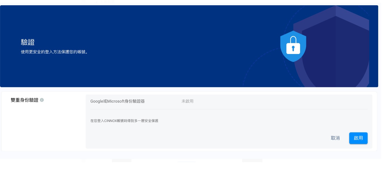 CINNOX 允許您設定雙重身份驗證功能。它要求您登入 CINNOX 服務時,在輸入用戶名稱和密碼後,輸入身份驗證碼。這個從身份驗證應用程式產生的驗證碼,用來核實您的登入身份。假如您的密碼已被洩漏,這個身份驗證碼是額外的安全措施,有助確保您在 CINNOX 帳號的資料安全。