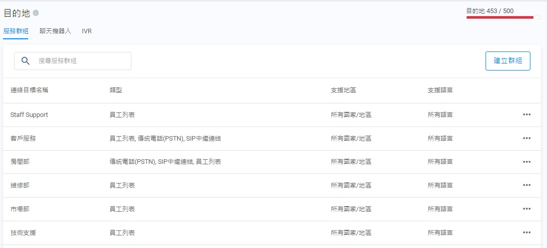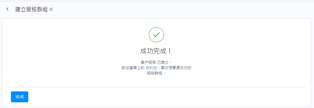 新建立的服務群組會在目的地頁面列出,可供設定頻道路由時選擇。