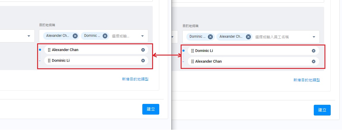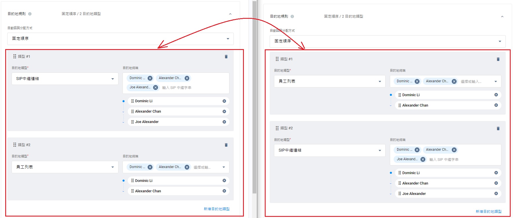 - 每個目的地類型的終端,均可用拖曳方式(Drag and Drop)方式調換次序。