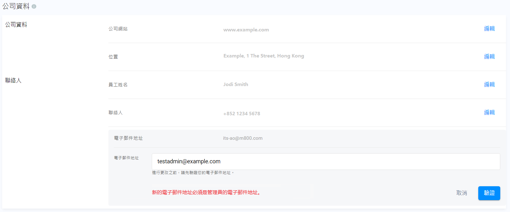 你可以編輯和更新公司資料,尤其當你所屬組織的聯絡人改變時。