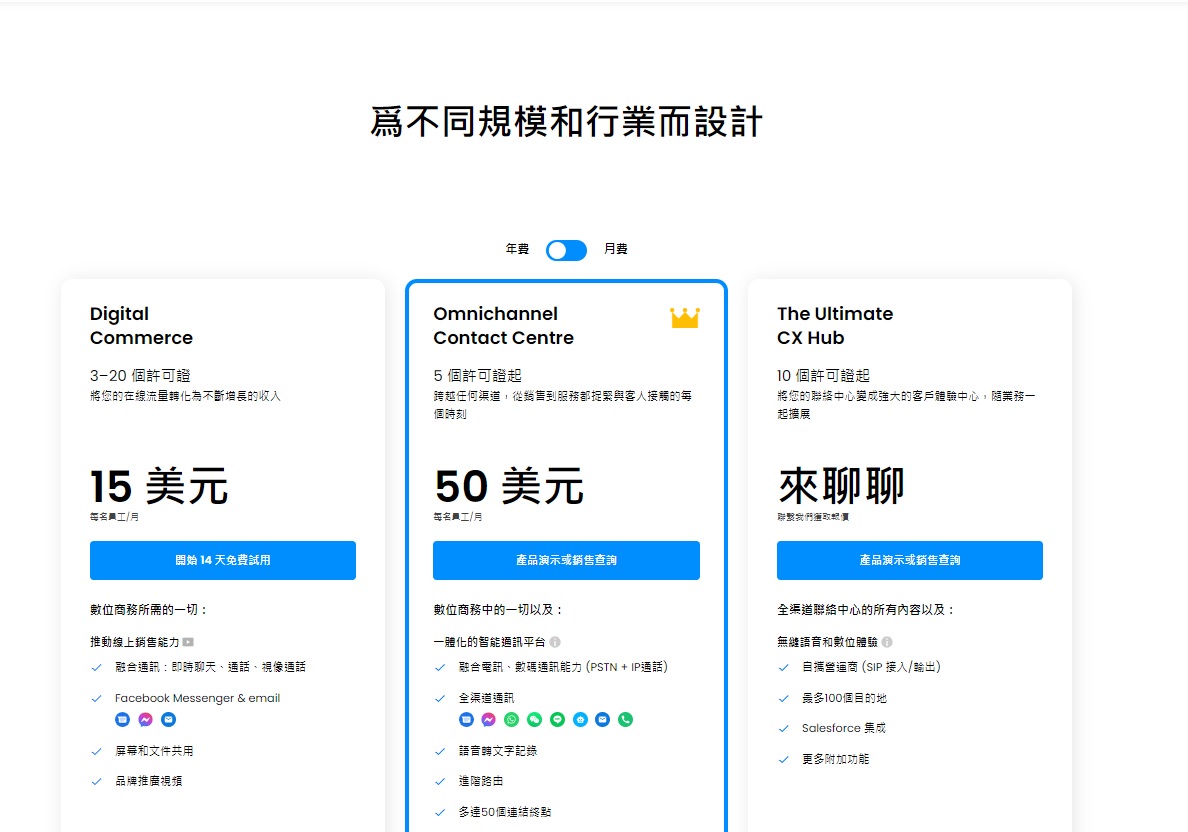 之後,你可以在查看所有方案和功能的頁面,查看每個服務方案的完整功能,以及其相應價格。