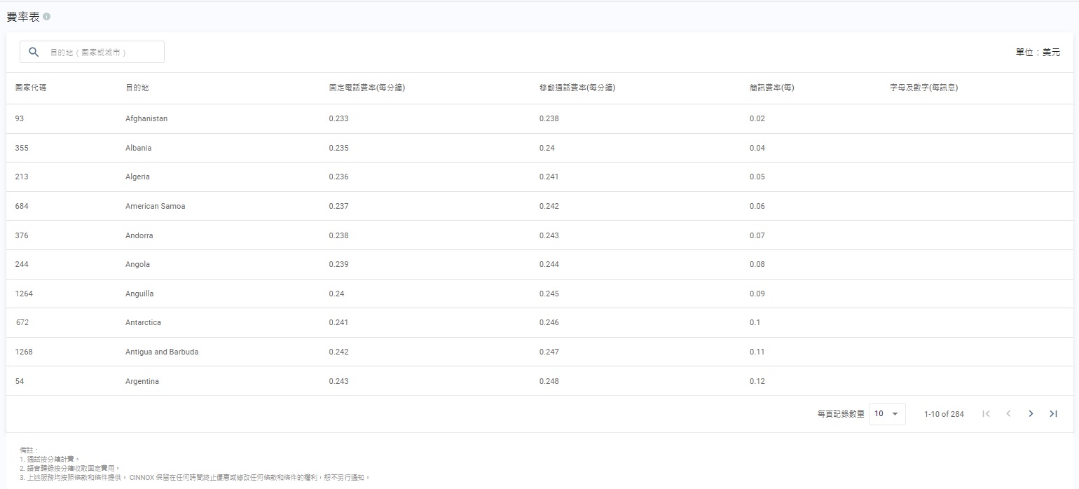 - 所有國家/地區的CINNOX通話(員工對訪客和員工對員工 的VoIP 通話),均按每分鐘固定收費計算。