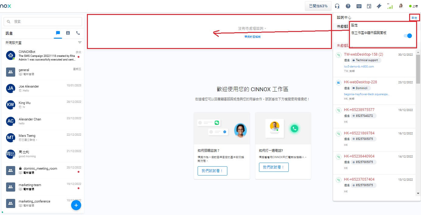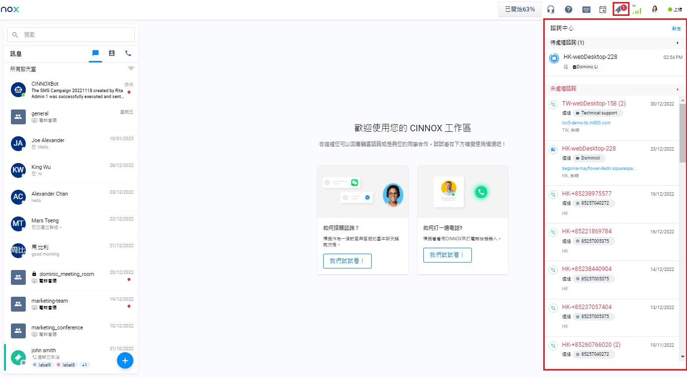 你無需瀏覽工作區,在諮詢中心即可知道待處理和未處理的諮詢(由最近的諮詢開始排列)。當有新未處理的諮詢時,會用紅色數字徽章通知。