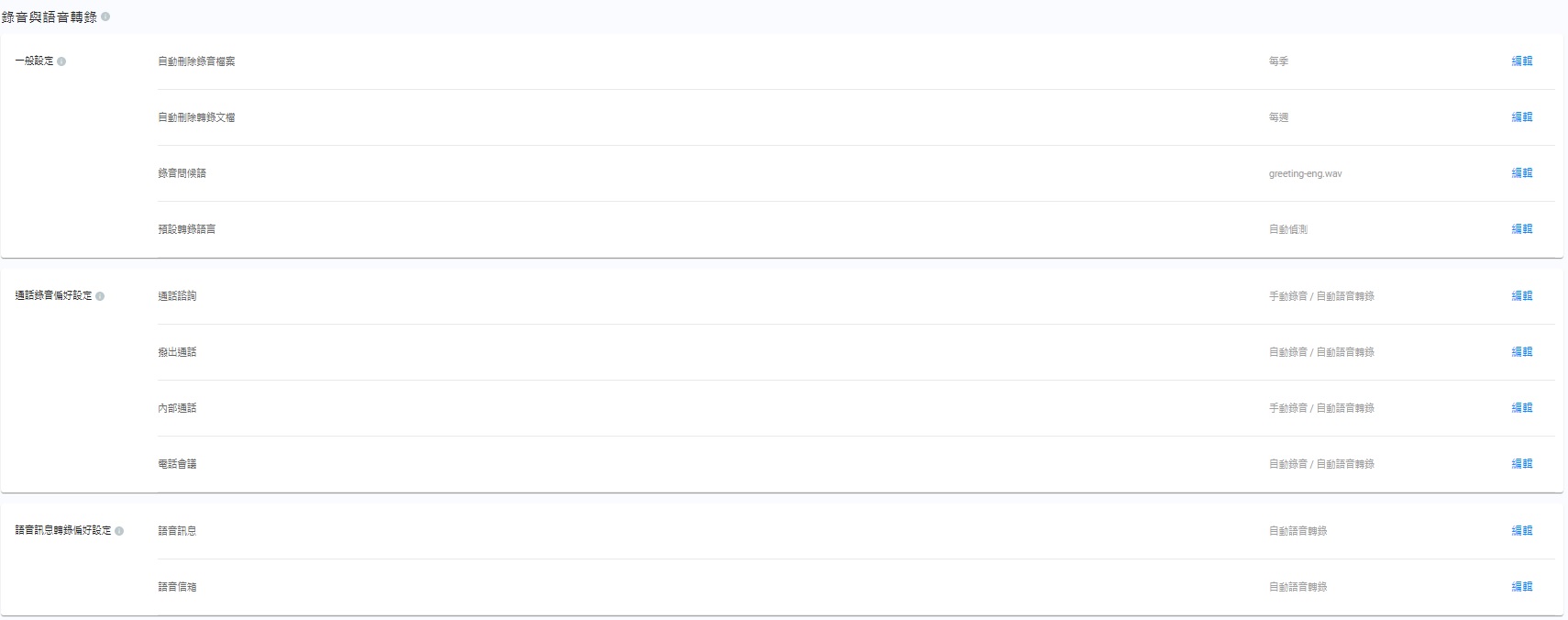 - 點擊 撥出電話 中的 編輯 按鈕。從下拉單中選擇選擇 自動語音轉錄,以允許轉錄撥出電話,然後點擊 儲存 按鈕。
