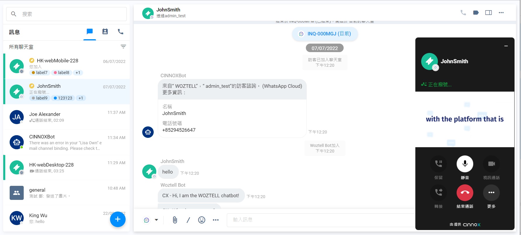 作為員工,你可以在CINNOX進行兩種類型的通話: