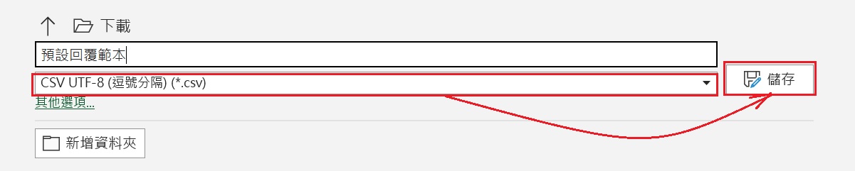 以CSV URF-8 (逗號分隔) (*.csv) 格式儲存檔案。
