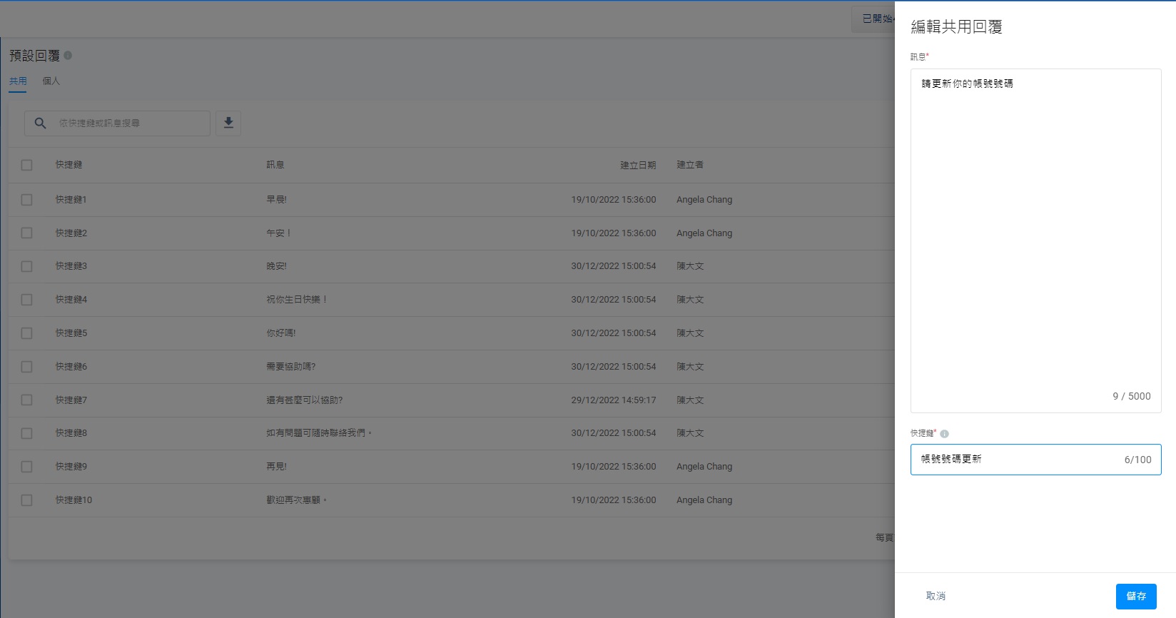 - 根據你的需要,編輯預設回覆以及快捷鍵。
