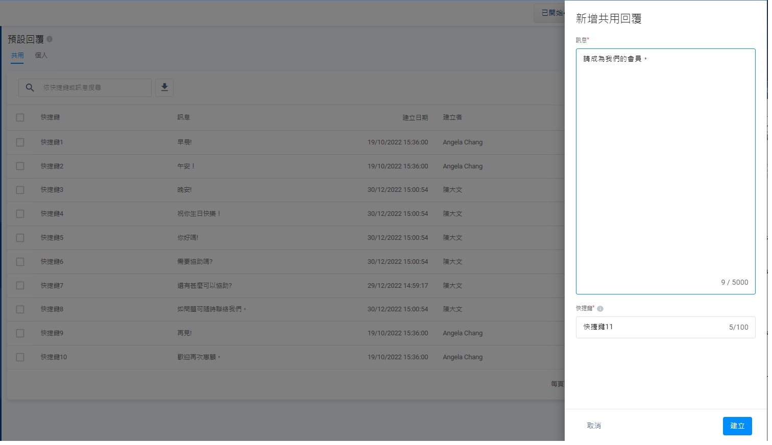 新增共用回覆