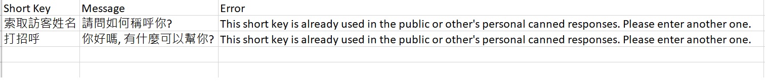 假如只有10個位置可供預設回覆加入,當匯入20個預設回覆時,頭10個會成功匯入,餘下10個的預設回覆則無法匯入。