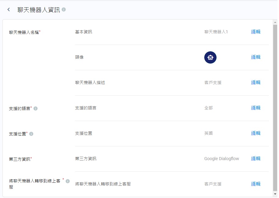 有關一般聊天機器人配置的詳細資料,請參考一般聊天機器人配置部份。