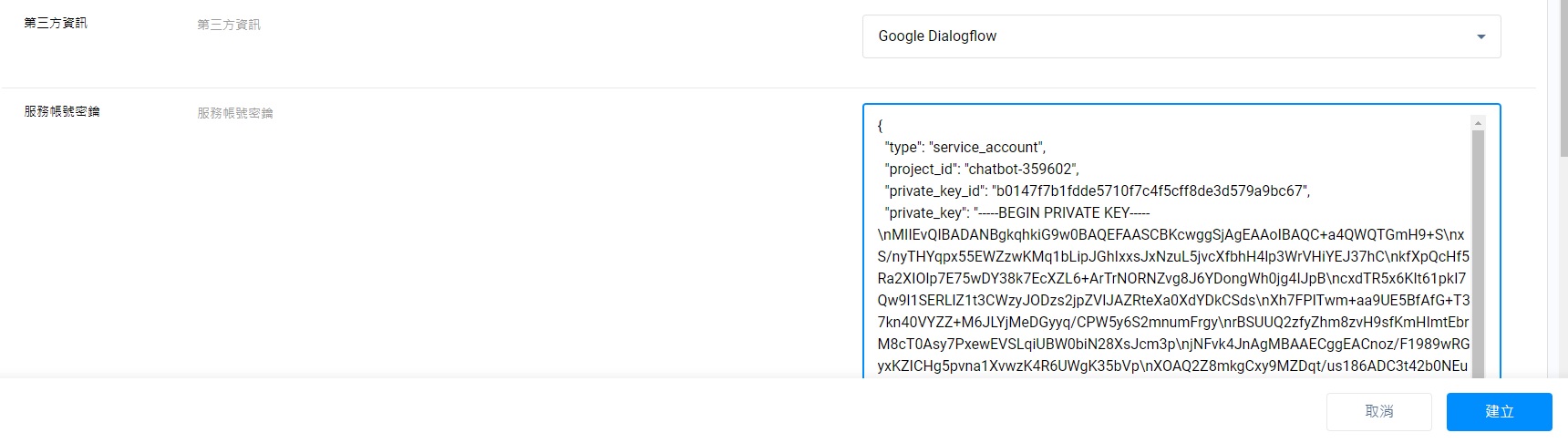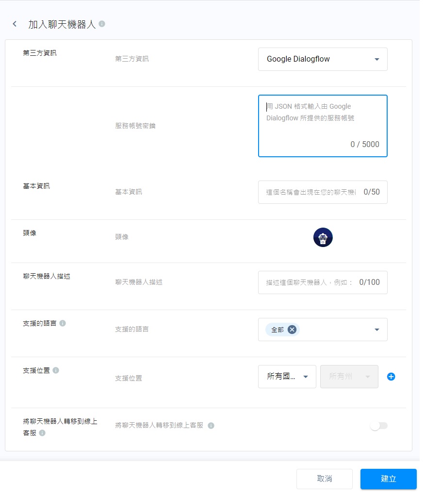 請確保所有填寫的資料,與你聊天機器人帳號的資料一致。