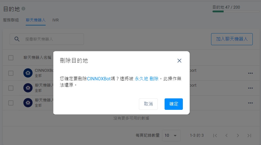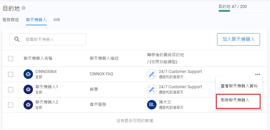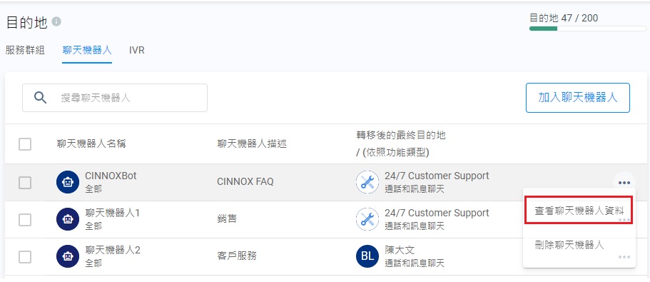 無論目的地是否有聊天機器人,路由規則的運作均相同。 此外,聊天機器人只能作聊天諮詢。