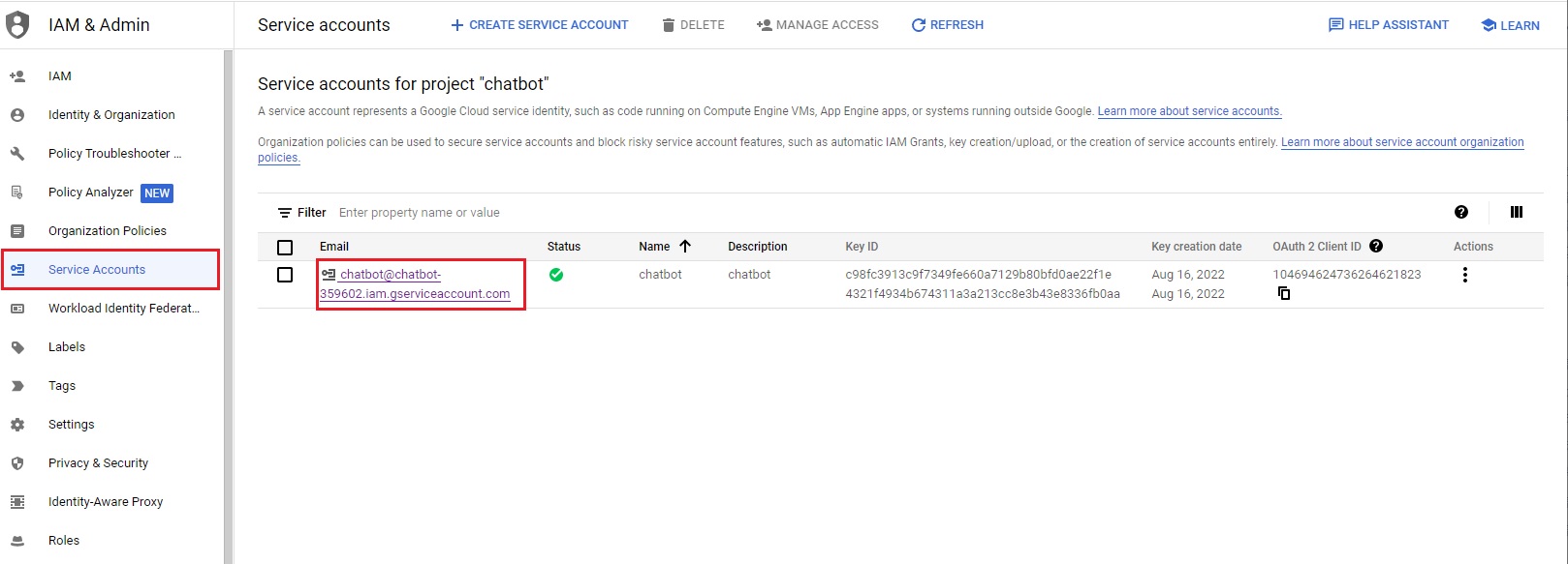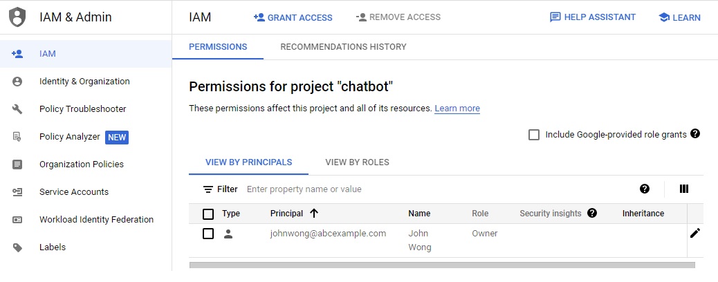 請確定在IAM頁面裡,已經將permissions賦予新project。