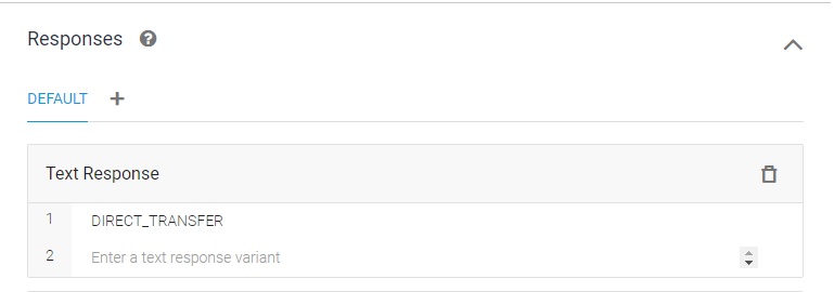 建立一個Text Response,並加入關鍵字DIRECT_TRANSFER作為回應,以觸發聊天轉移到線上客服傳輸流。