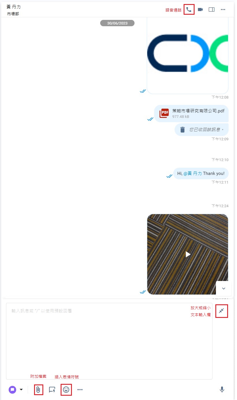以下是你可以在 CINNOX工作區中,使用的聊天功能: