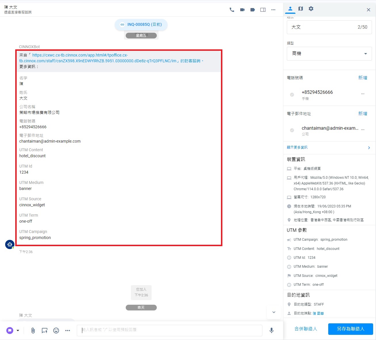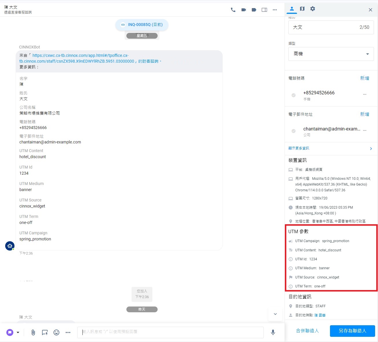 此亦會提供UTM參數(指定的諮詢來源才提供UTM參數,這些諮詢來源包括:來自客服群組以及直接諮詢的網頁連結)