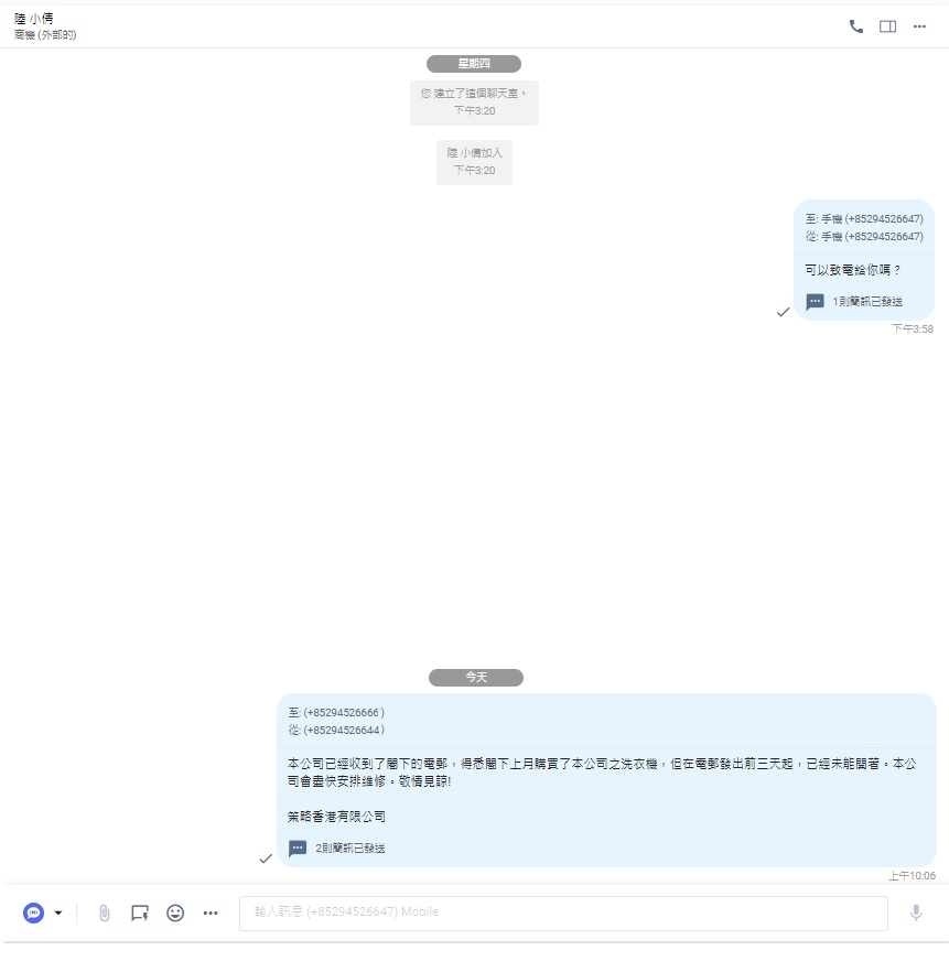 同一員工對同一客戶的每一次互動訊息,都會在相同互動聊天室中發佈,這樣更容易找回過往的對話,確保客戶從同一員工,獲得一致而持續的更新。這樣的設計不同於一般查詢聊天室。