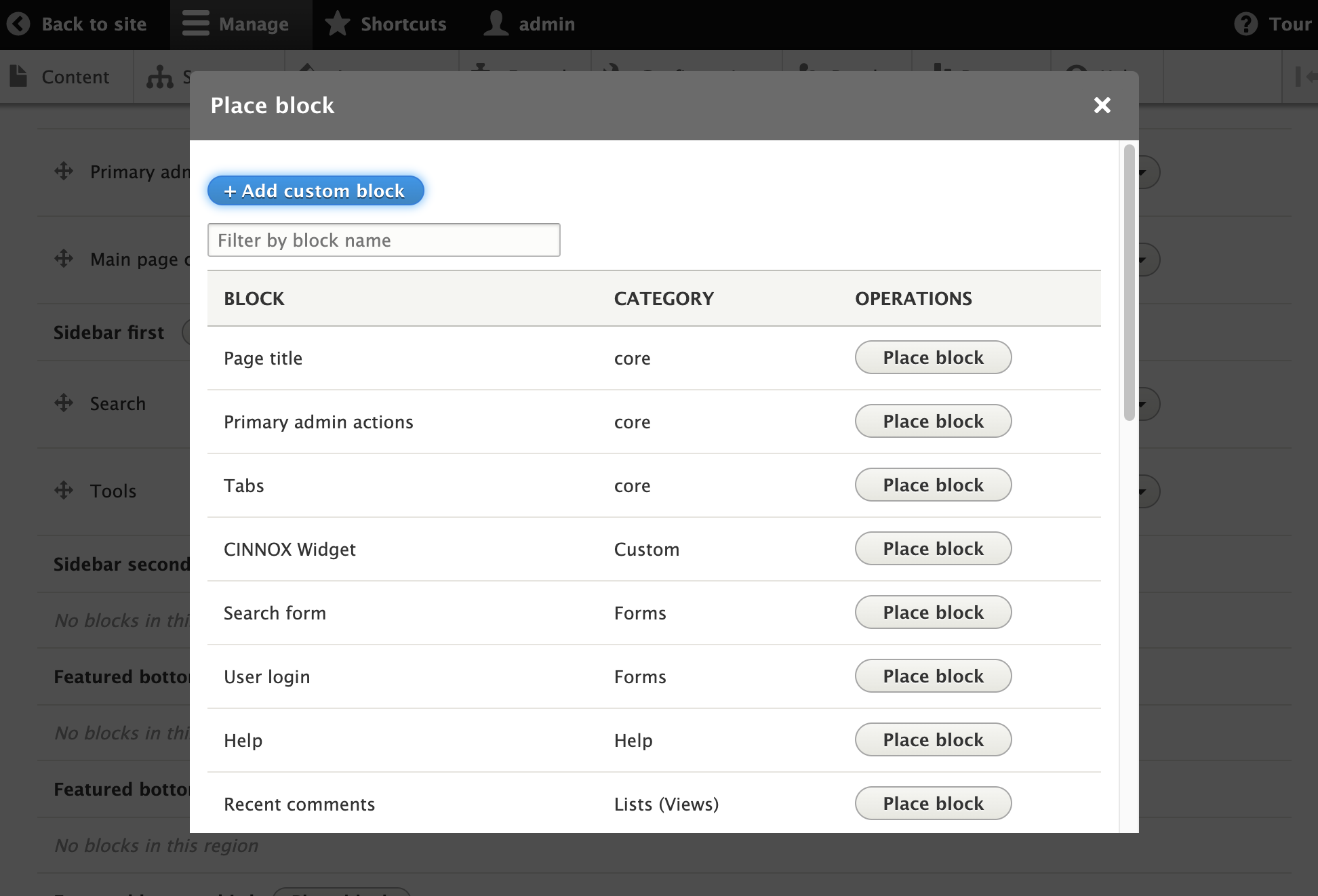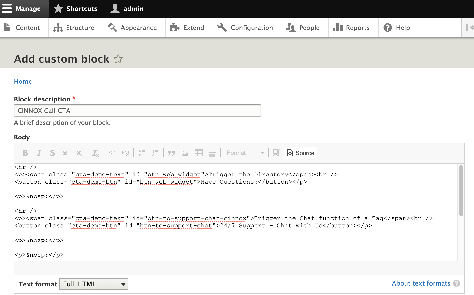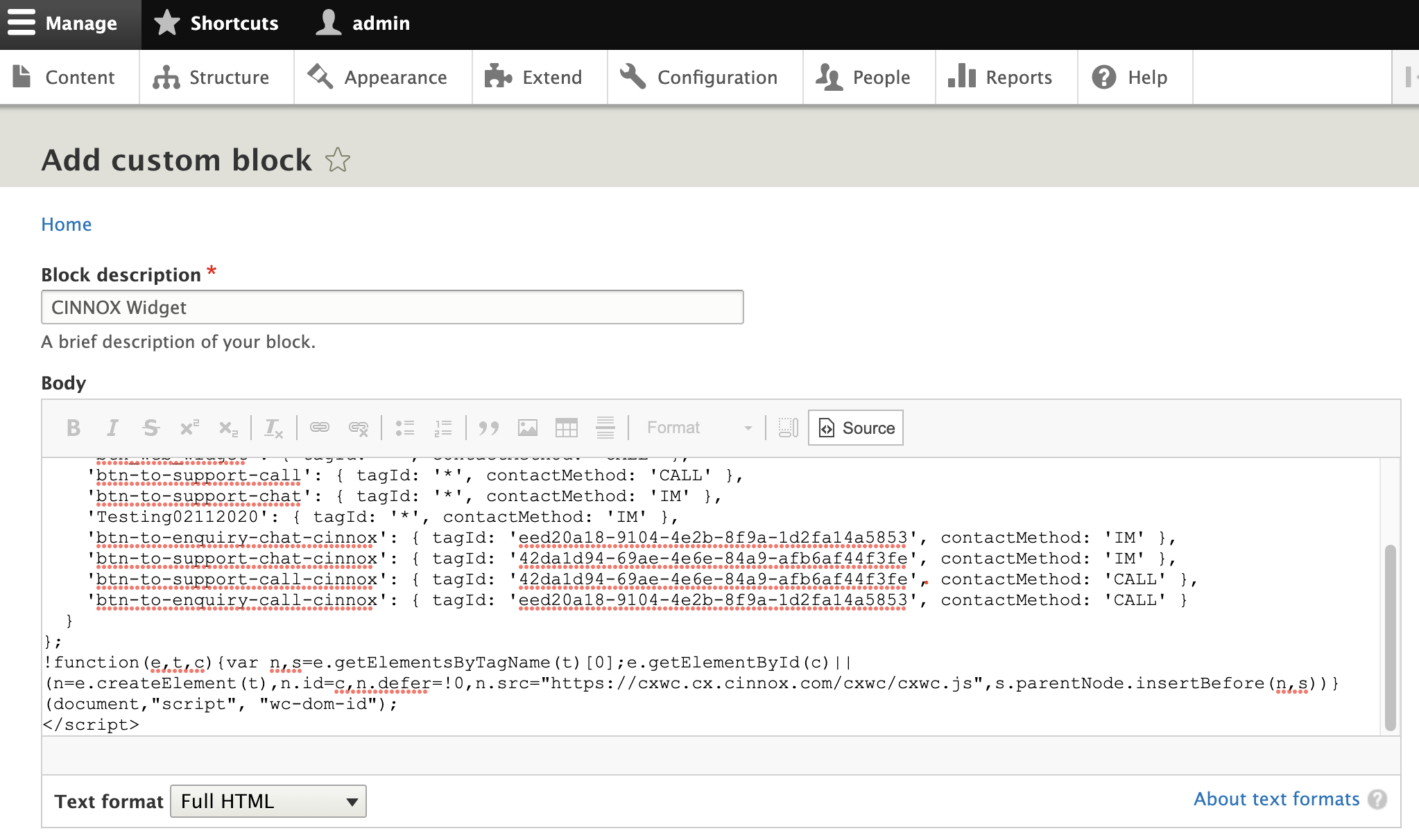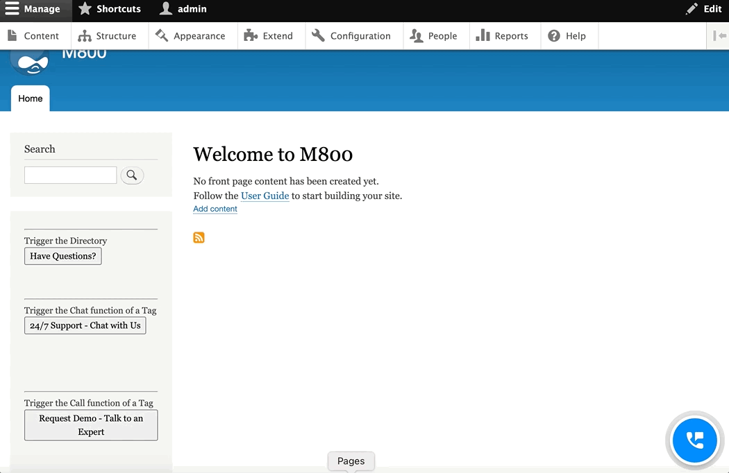 - 如果想在網站上加上「一鍵操作」,請執行以下步驟前,先確定在**通過Drupal的Custom Block安裝CINNOX懸浮圖標**時,其安裝代碼已包含「一鍵操作」的代碼。