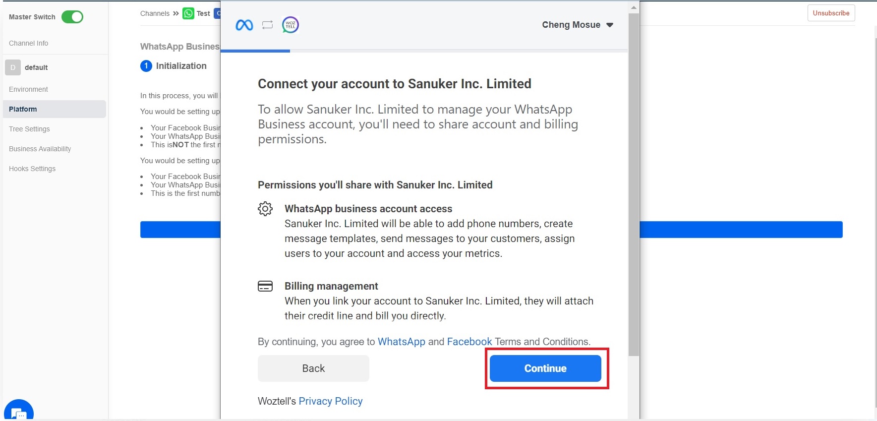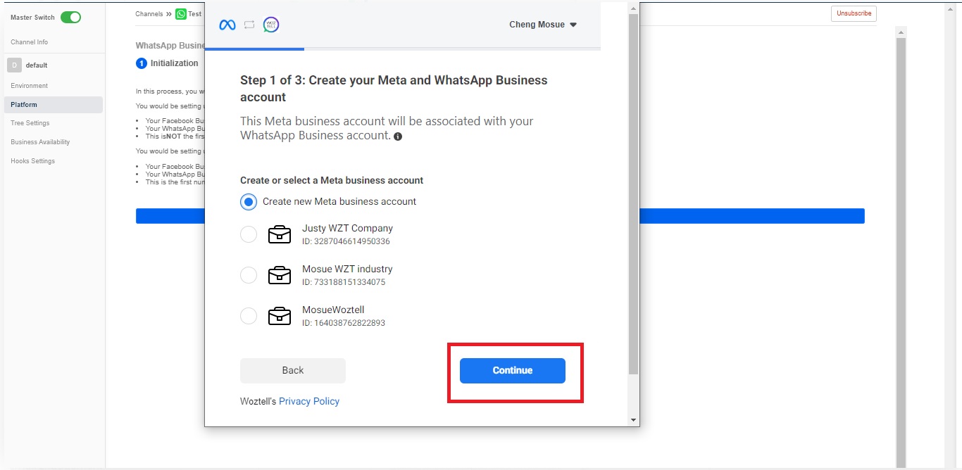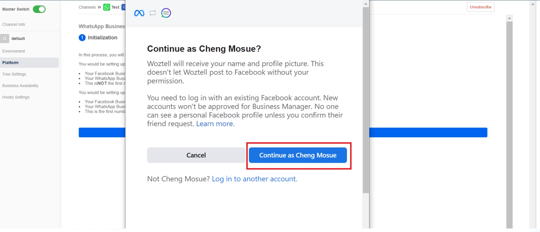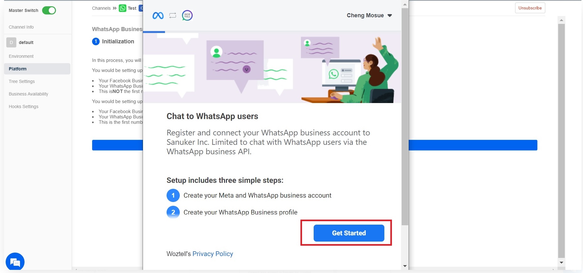 有關更多建立頻道的資料,參考https://doc.woztell.com