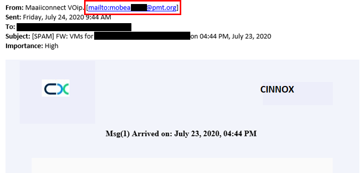 當有新服務提供時,CINNOX的電子郵件有時會包含URL。可是,網絡罪犯隱藏假的連結於真的連結內,令毫無戒備心的受害人點擊連結時,到達釣魚網頁或惡意網站,從中可能自動下載了惡意軟件到他們的電腦內。