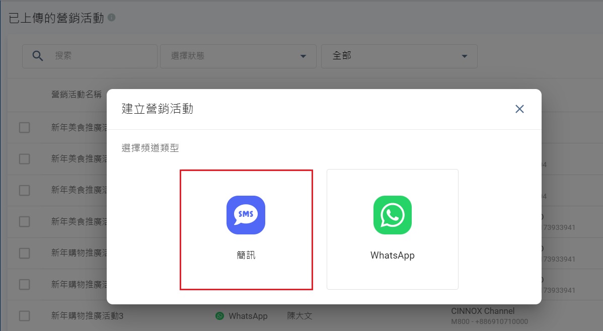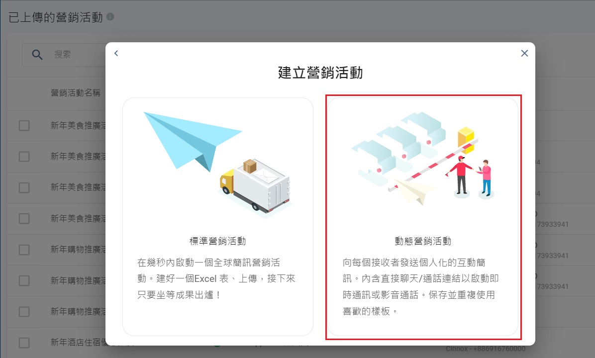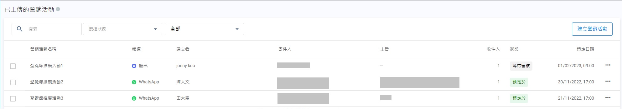 - 完成了建立簡訊動態營銷活動後,該營銷活動會在已上傳的營銷活動面上列出。