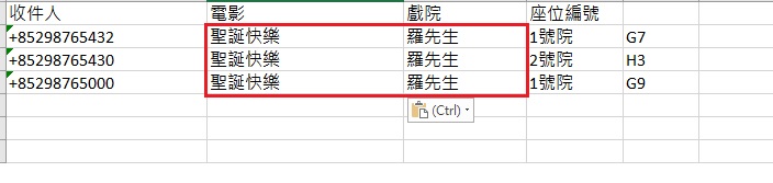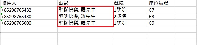 例如:當你輸入聖誕快樂, 羅先生到電影欄,檔案顯示如下: