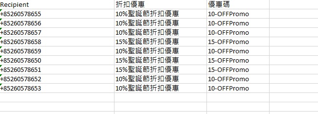 每次營銷活動,最多只能發送訊息至10000個收件人的電話號碼。