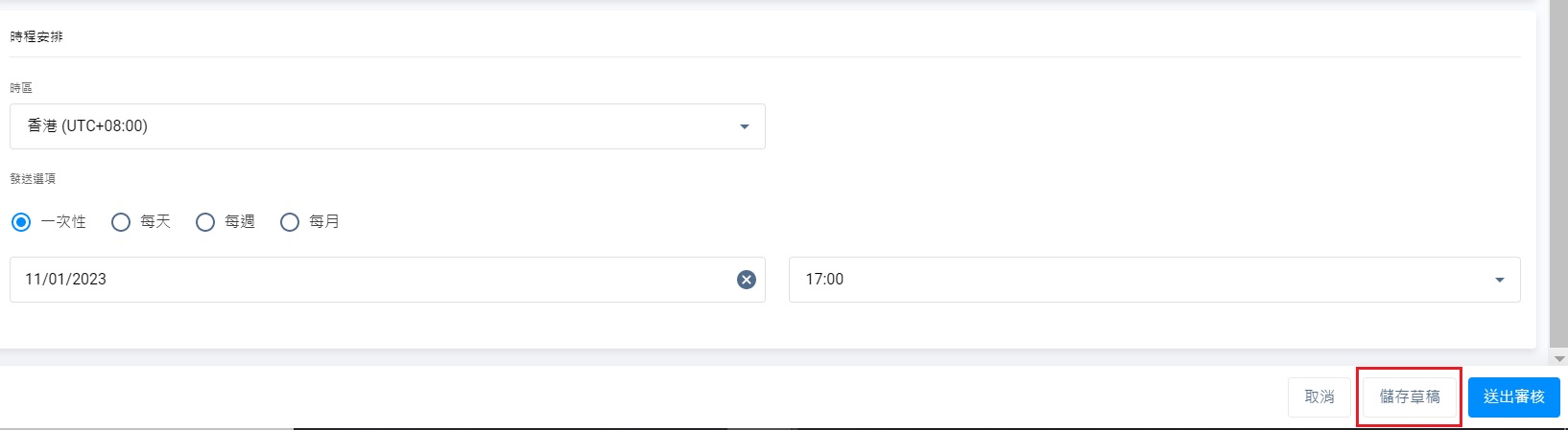 - 你可以點擊儲存草稿儲存營銷活動草稿。此草稿會移到營銷活動草稿版面上。