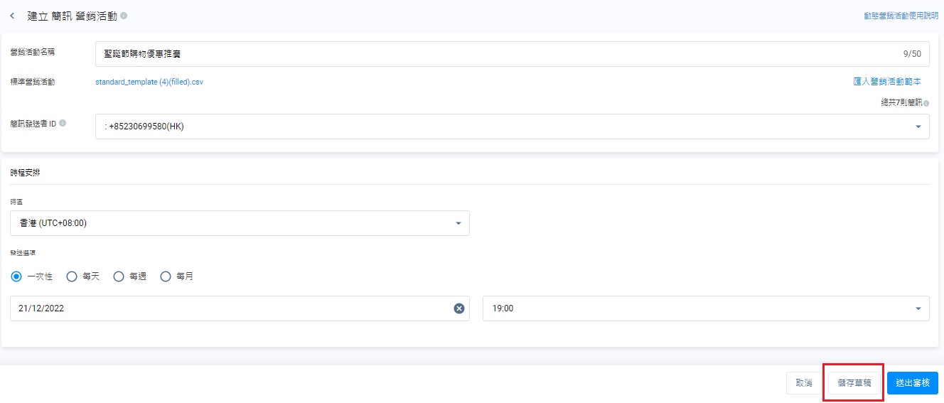 送出營銷活動作審核