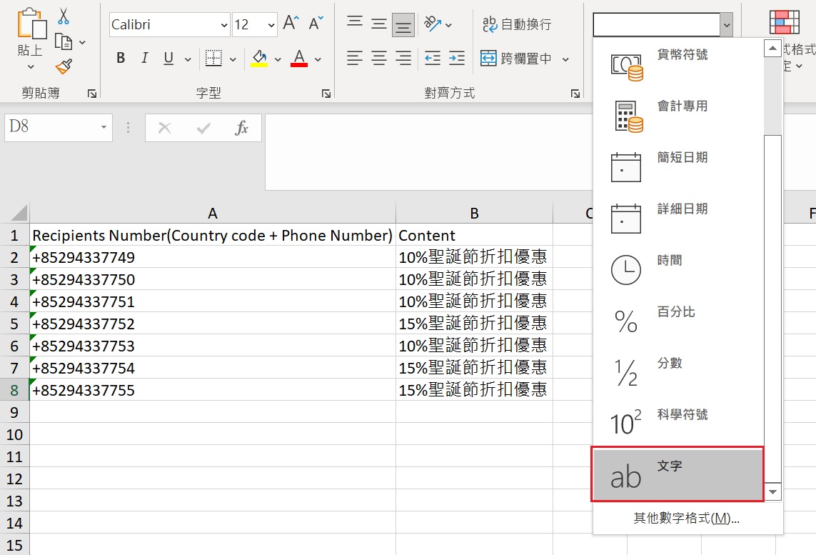 如準備好所有發送營銷活動簡訊的資料: