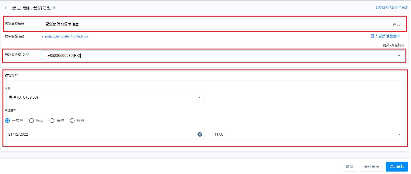 這部份指引你如何建立標準營銷活動,從而使用試算表發送簡訊予目標收件人。