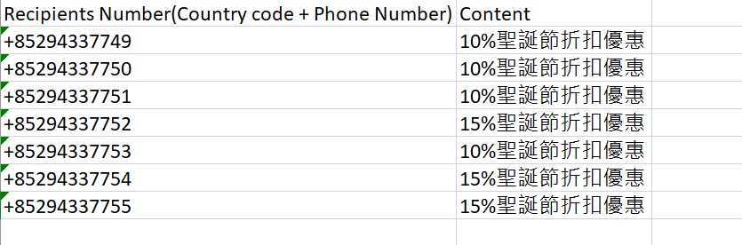 每次營銷活動最多只能發送訊息予10000個電話號碼。