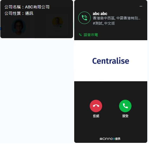 - 頻道客製資訊,亦會顯示在通話螢幕左側,用於通話諮詢。
