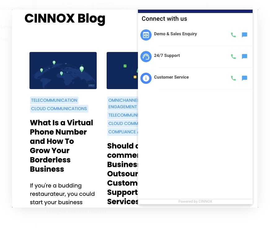 - 這樣,訪客可以使用你網頁上的CINNOX懸浮圖標,即時與你通話或聊天。