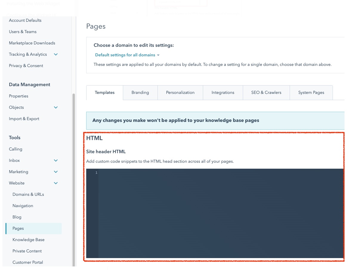 - 在Templates分頁內,導航到HTML>Site header HTML。