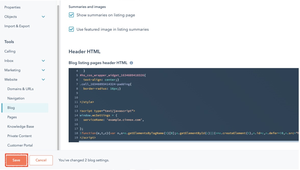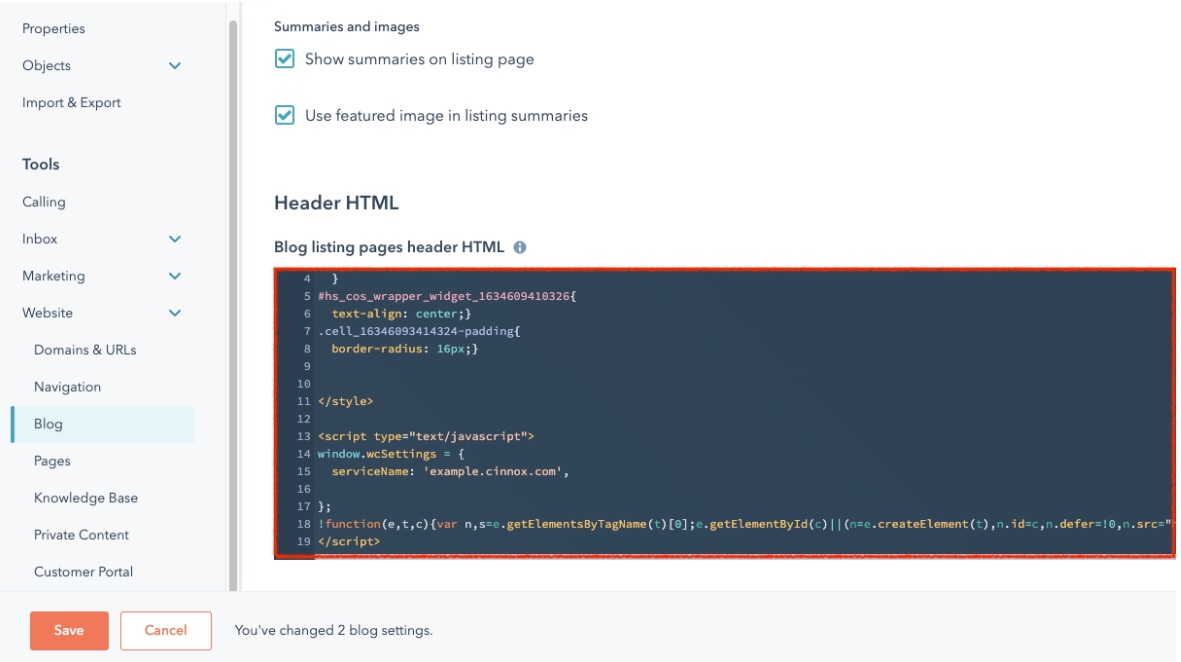 - 回到你的Hubspot部份,貼上你在CINNOX複製的安裝代碼。