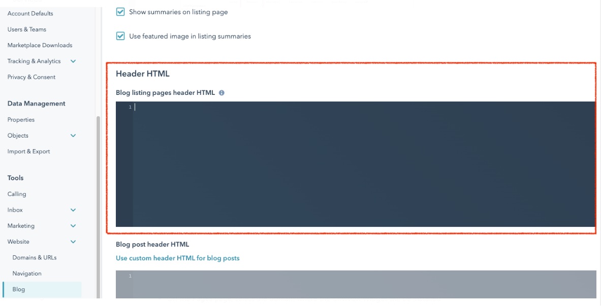 - 在Templates分頁內,導航到Header HTML>Blog listing pages header HTML。