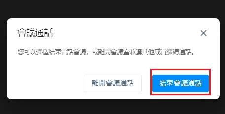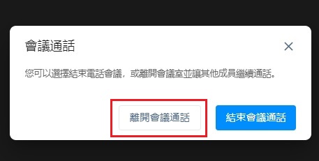 - 作為成員,點擊結束通話按鈕後,你會離開會議。會議會繼續進行。
