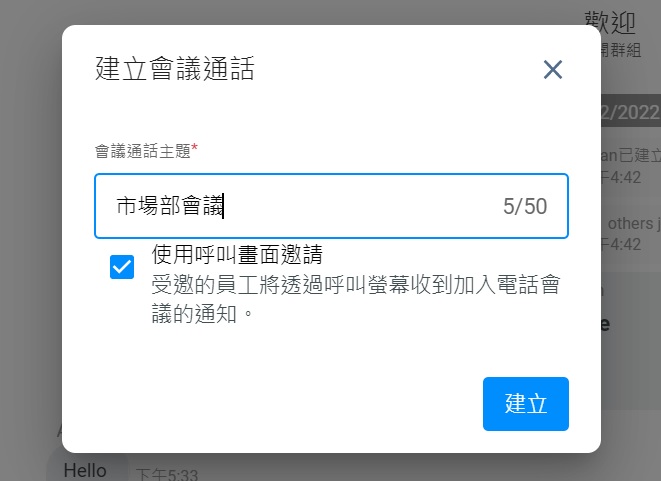 - 點擊確認。被邀請的成員,將收到電話會議邀請,接受邀請的成員,將被加入到會議中。