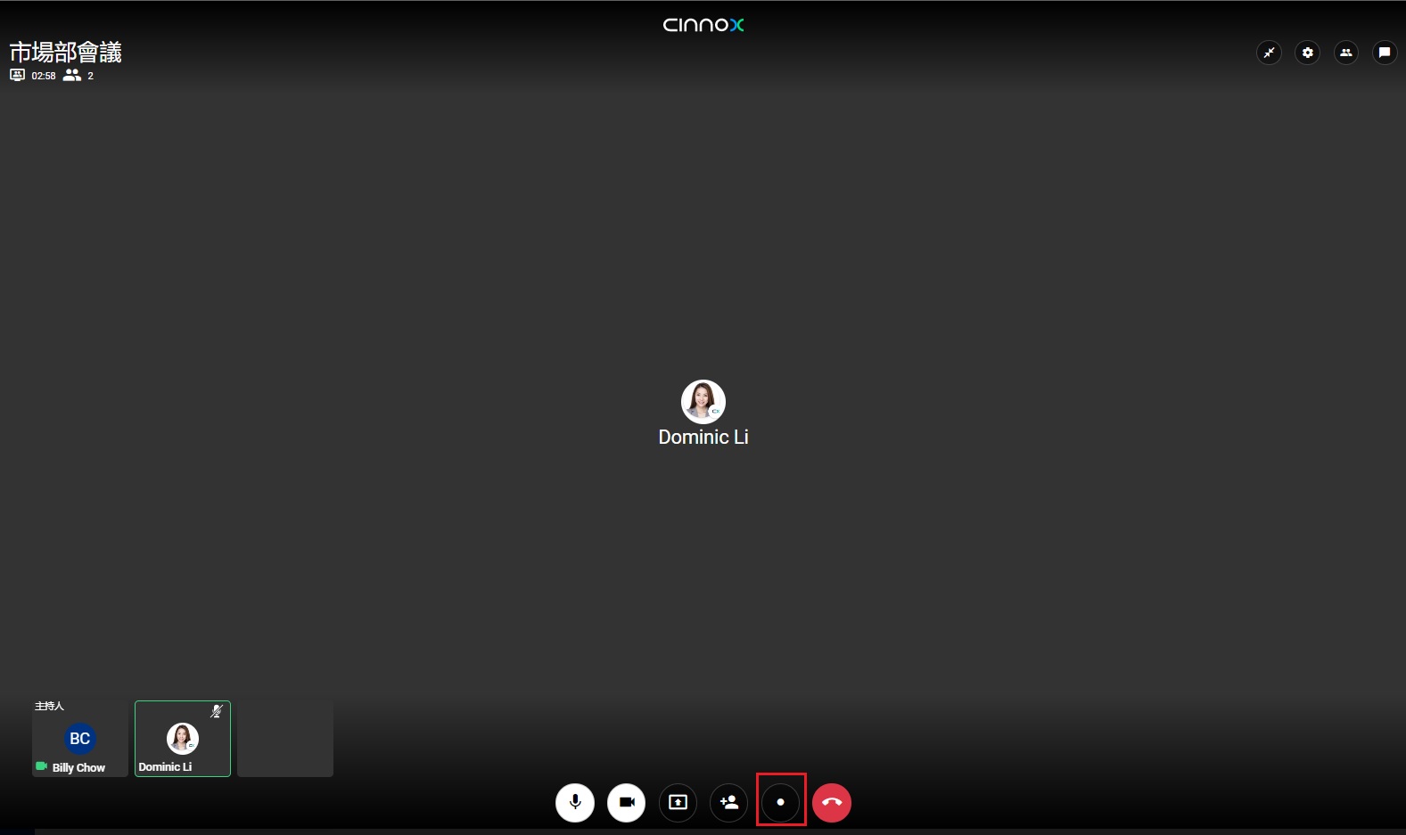 - 要錄製你的會議通話,請點擊位於會議通話窗口底部的錄音按鈕。會議通話結束後,錄音停止。