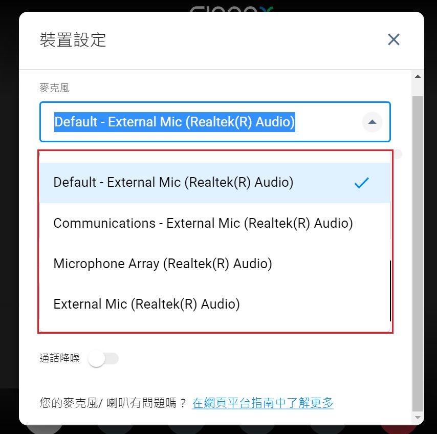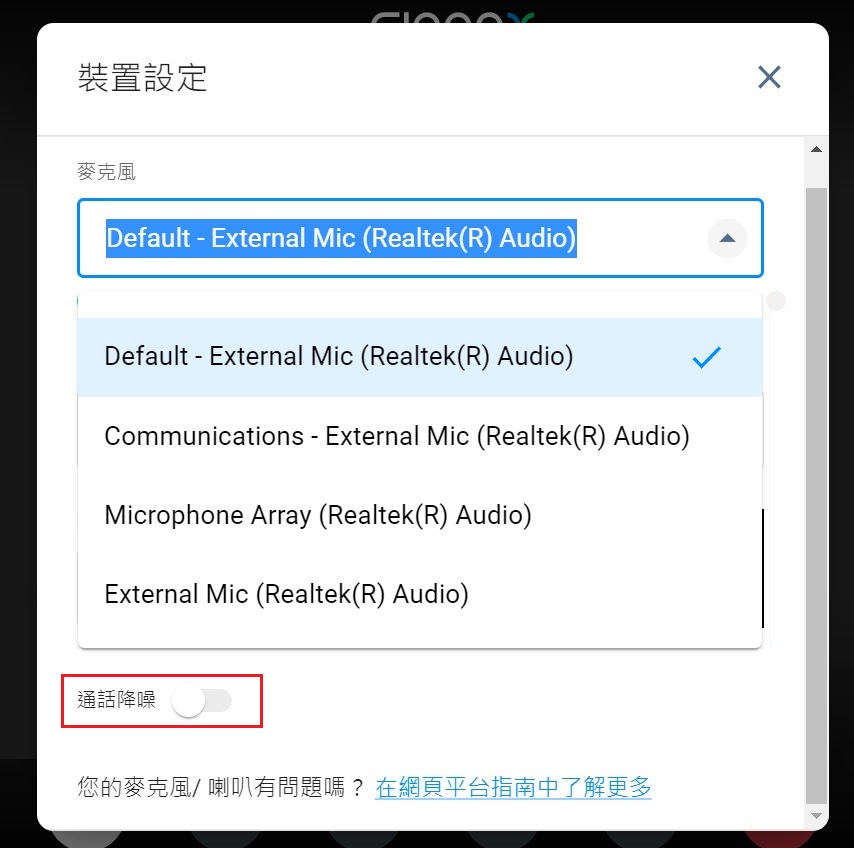 - 會議期間,你可以選擇麥克風、喇叭和攝影機。