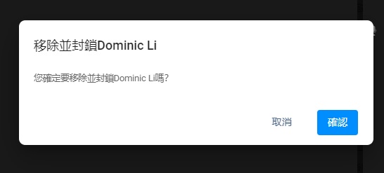 - 點擊成員姓名旁邊的更多 (...)按鈕,然後點擊移除。將出現彈出式訊息,其中包含以下文本:您確定要移除並封鎖(成員姓名)嗎?