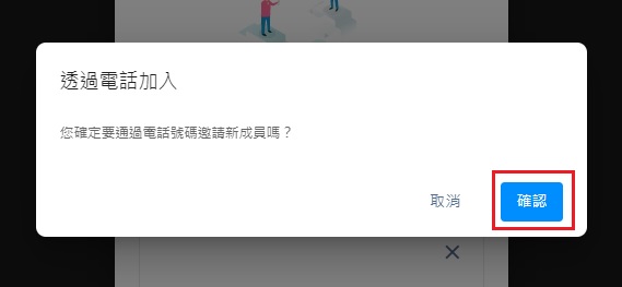 - 點擊通話。以下彈出式訊息出現:你確定要通過電話號碼邀請新成員嗎?