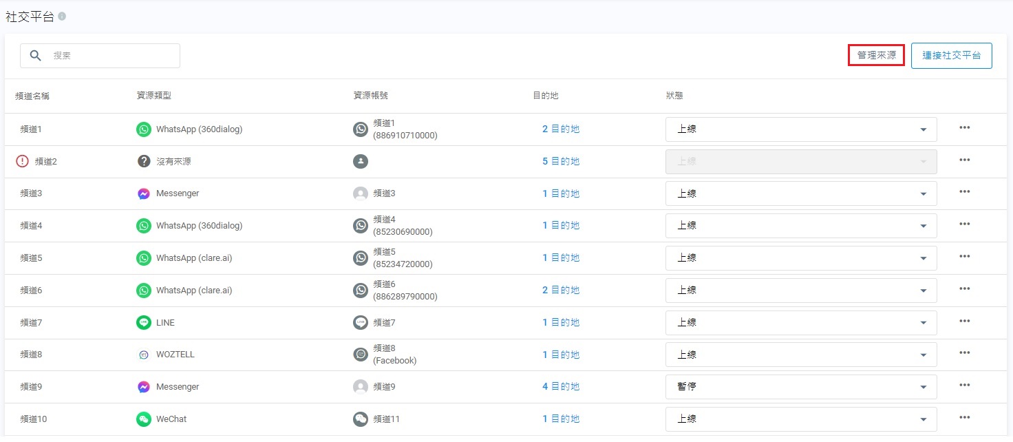 CINNOX的頻道來源指第三方連接CINNOX社交頻道的社交平台,以及訊息軟件。這些社交頻道的來源可以是: