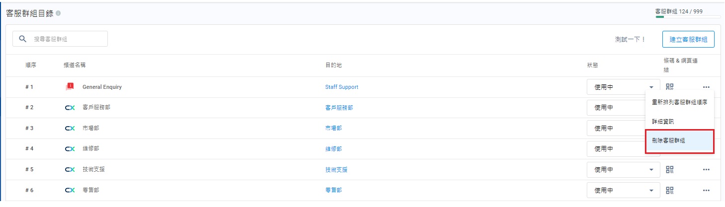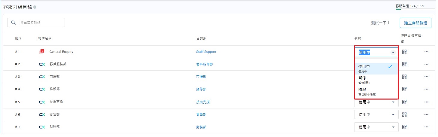 - 更改客服群組詳細資訊,會在點擊儲存後立即生效。