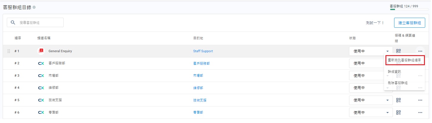 你可以重新排列客服群組在懸浮圖標中列出的次序。