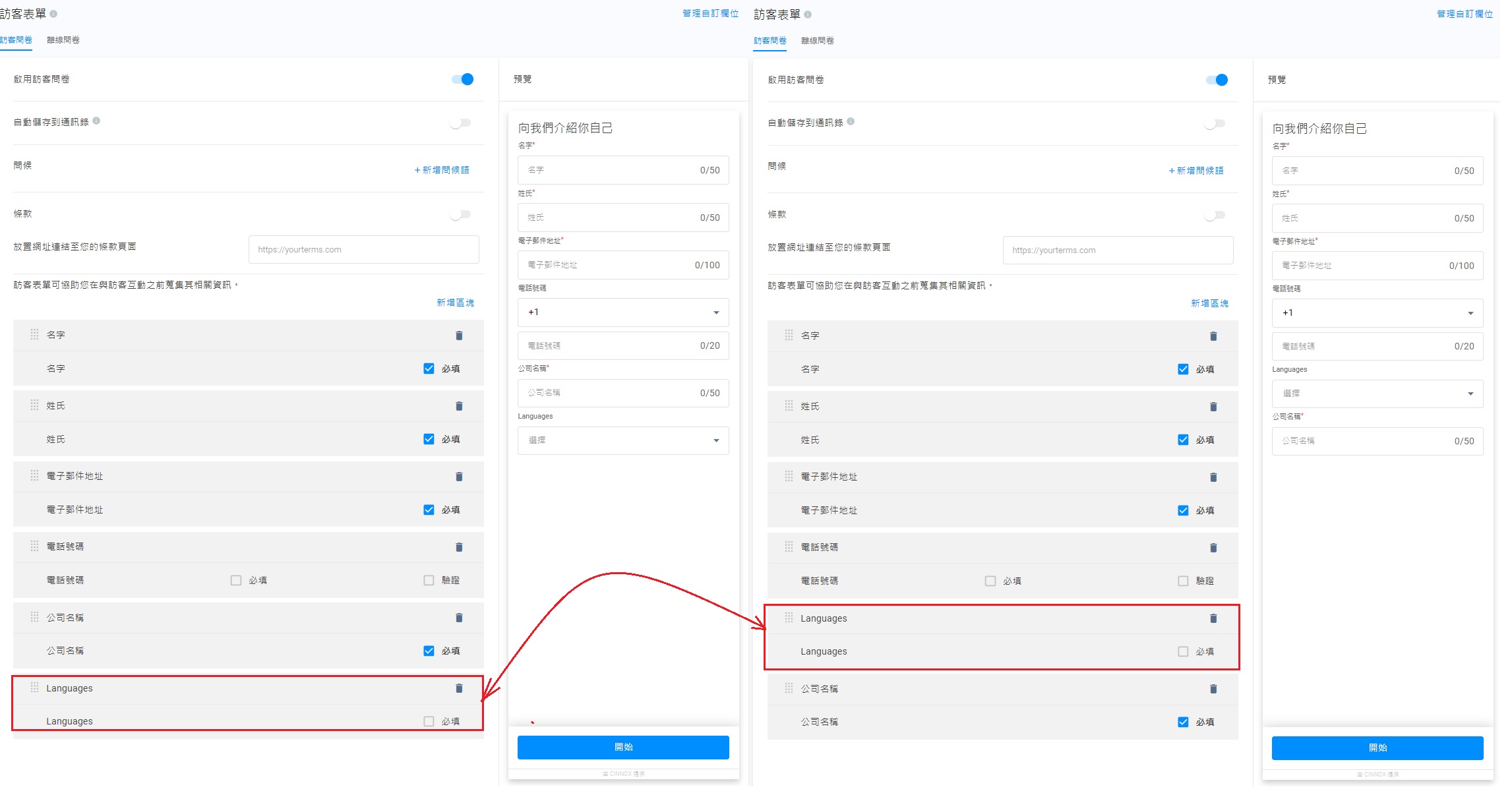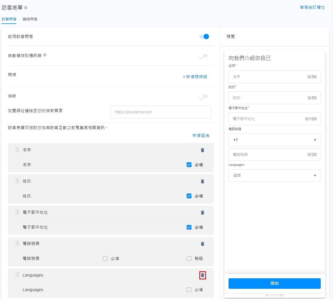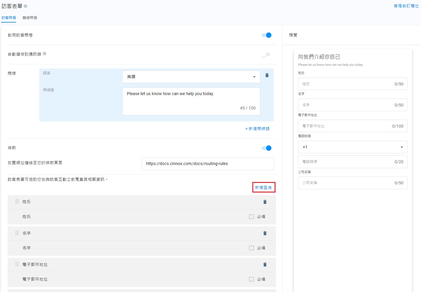 你可以在訪客問卷中新增、編輯和刪除自訂欄位,以增加收集資料的效率。