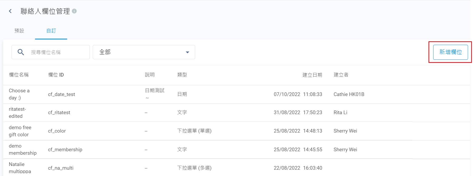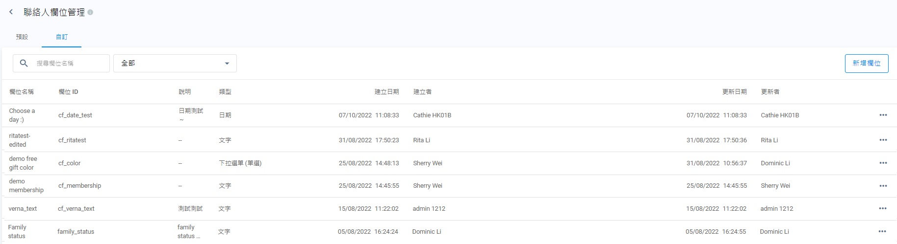 如要新增自訂欄位,需從以下其中一個進入點(Entry Points),進入聯絡人欄位管理頁: